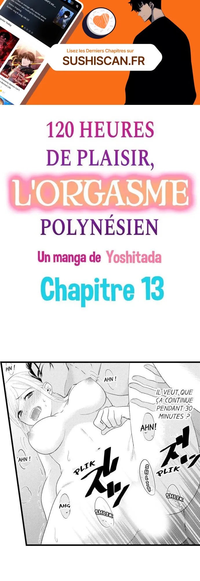 Lisez le dernier manga 120 heures de plaisir, l’orgasme polynésien Chapitre 13 sur SushiScan. Le manga 120 heures de plaisir, l’orgasme polynésien est toujours mis à jour sur SushiScan. N'oubliez pas de lire les autres mises à jour de manga. Une liste de collections de manga SushiScan se trouve dans le menu Liste de manga.