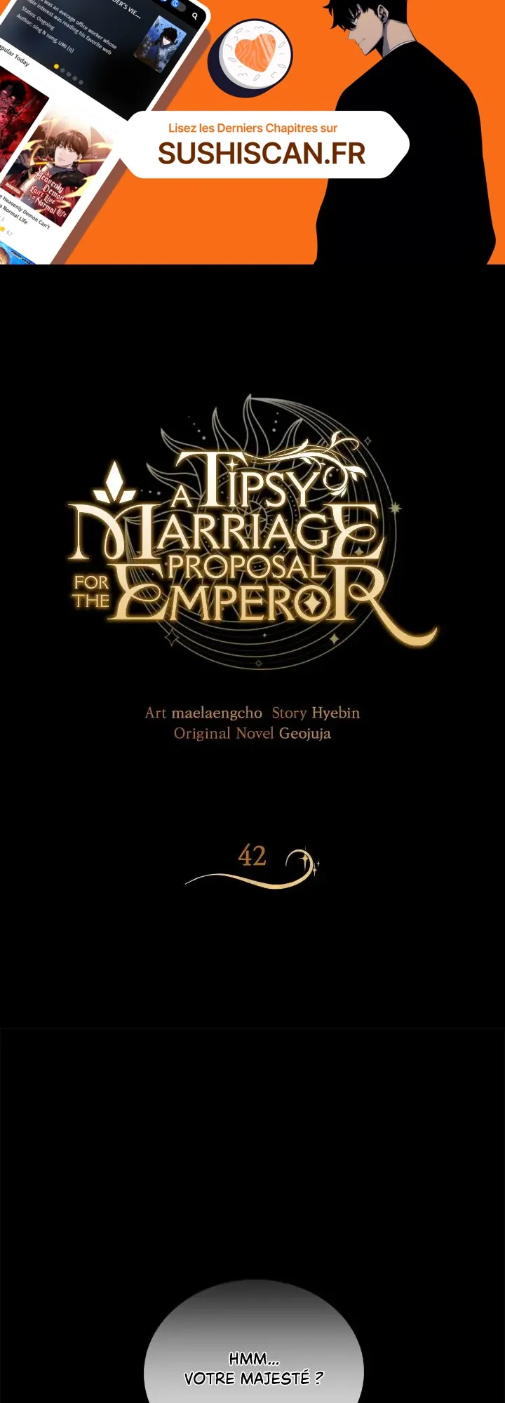 Lisez le dernier manga A Tipsy Marriage Proposal for the Emperor Chapitre 42 sur SushiScan. Le manga A Tipsy Marriage Proposal for the Emperor est toujours mis à jour sur SushiScan. N'oubliez pas de lire les autres mises à jour de manga. Une liste de collections de manga SushiScan se trouve dans le menu Liste de manga.