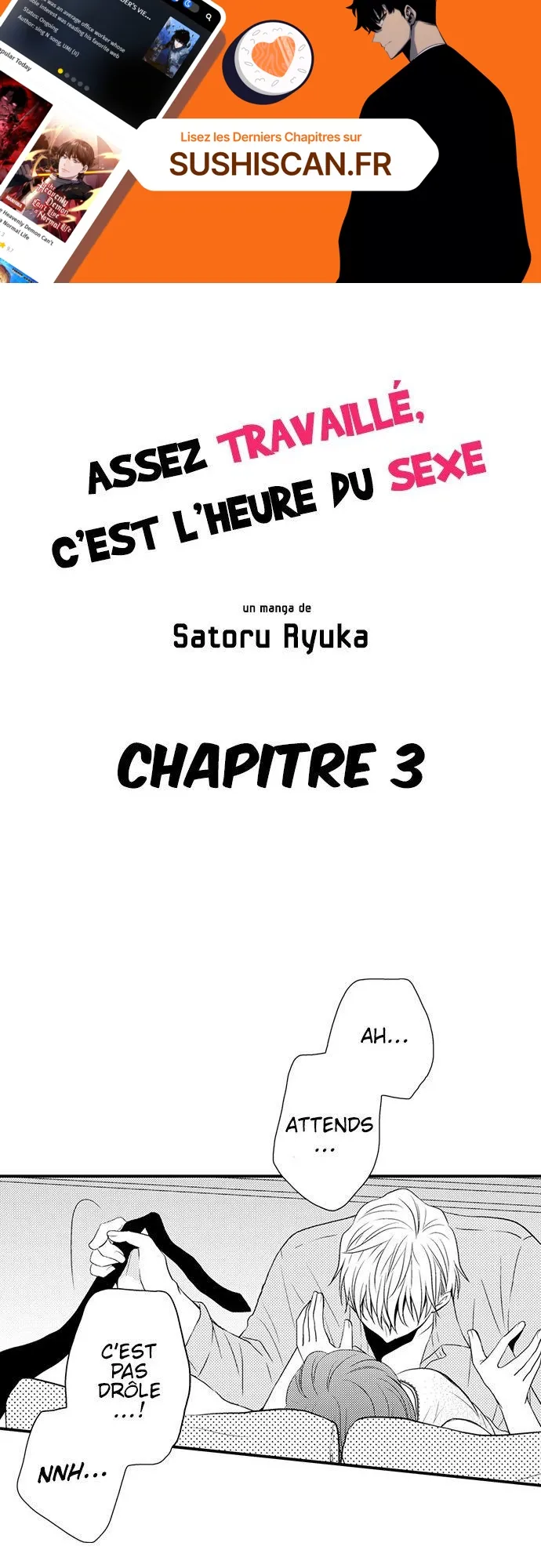 Lisez le dernier manga Assez travaillé, c’est l’heure du sexe Chapitre 3 sur SushiScan. Le manga Assez travaillé, c’est l’heure du sexe est toujours mis à jour sur SushiScan. N'oubliez pas de lire les autres mises à jour de manga. Une liste de collections de manga SushiScan se trouve dans le menu Liste de manga.