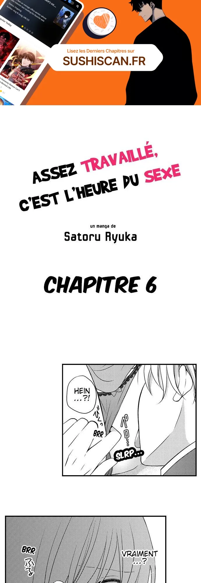Lisez le dernier manga Assez travaillé, c’est l’heure du sexe Chapitre 6 sur SushiScan. Le manga Assez travaillé, c’est l’heure du sexe est toujours mis à jour sur SushiScan. N'oubliez pas de lire les autres mises à jour de manga. Une liste de collections de manga SushiScan se trouve dans le menu Liste de manga.