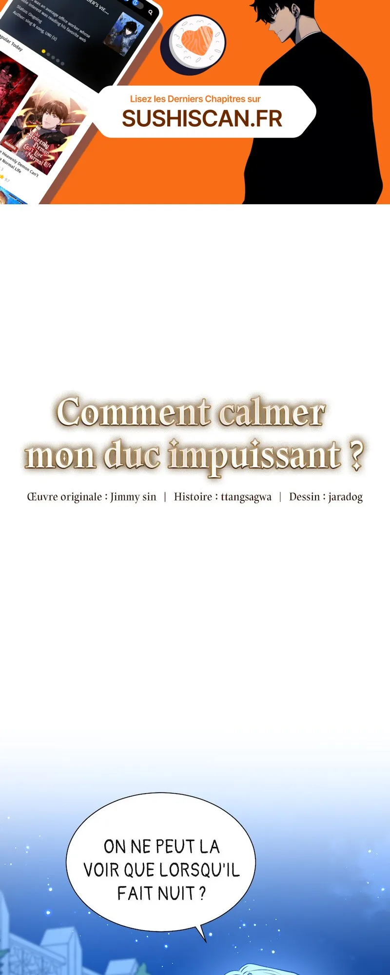 Lisez le dernier manga Comment calmer mon duc impuissant ? Chapitre 52 sur SushiScan. Le manga Comment calmer mon duc impuissant ? est toujours mis à jour sur SushiScan. N'oubliez pas de lire les autres mises à jour de manga. Une liste de collections de manga SushiScan se trouve dans le menu Liste de manga.