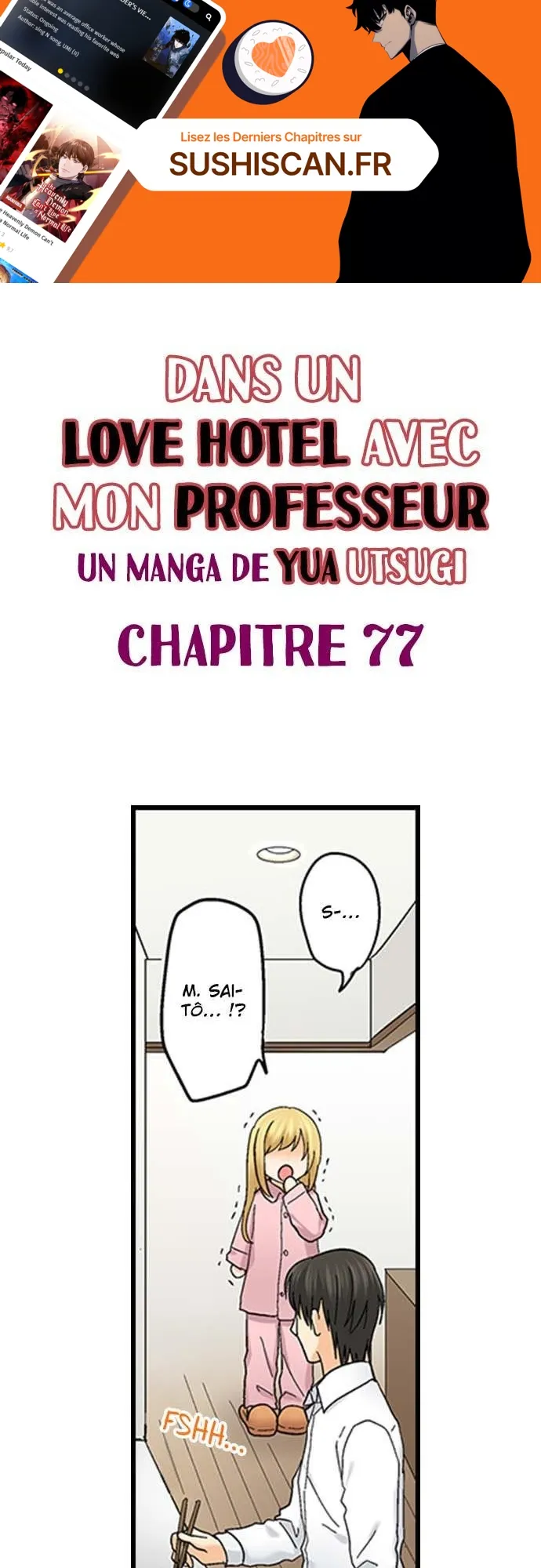 Lisez le dernier manga Dans un Love Hotel avec mon professeur Chapitre 77 sur SushiScan. Le manga Dans un Love Hotel avec mon professeur est toujours mis à jour sur SushiScan. N'oubliez pas de lire les autres mises à jour de manga. Une liste de collections de manga SushiScan se trouve dans le menu Liste de manga.