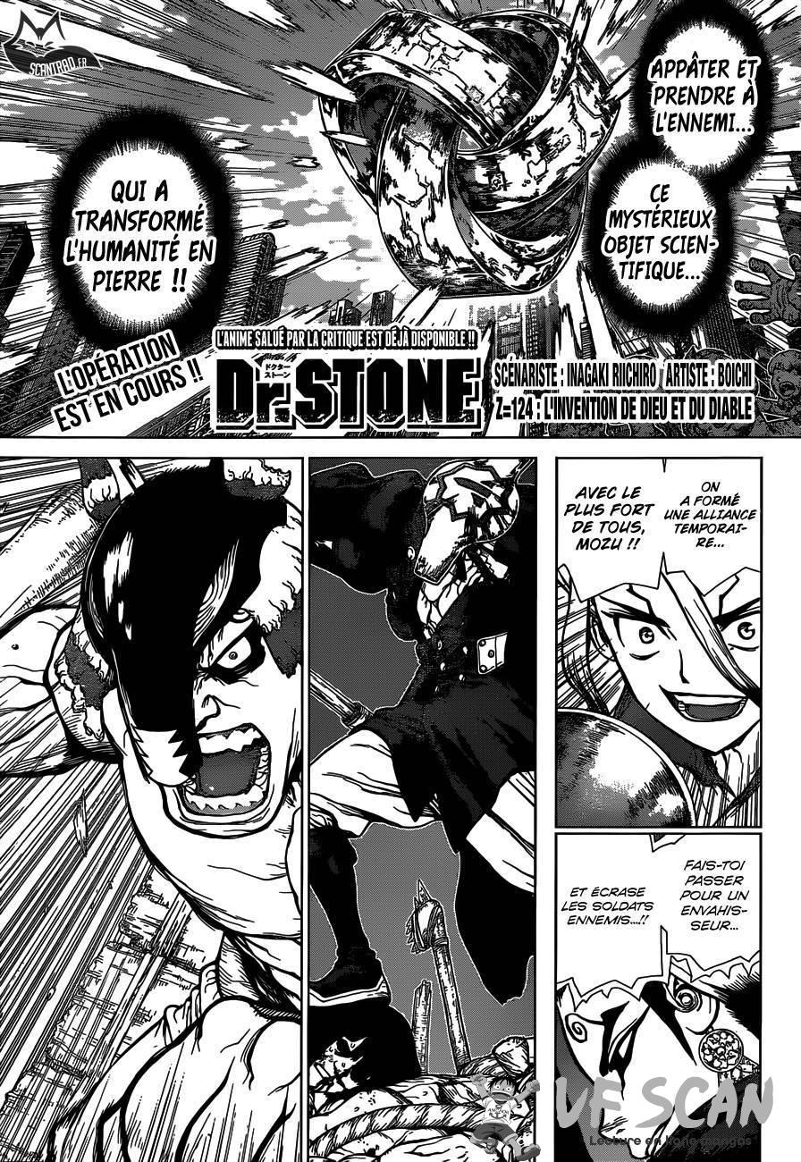 Lisez le dernier manga Dr. Stone Chapter 124 sur SushiScan. Le manga Dr. Stone est toujours mis à jour sur SushiScan. N'oubliez pas de lire les autres mises à jour de manga. Une liste de collections de manga SushiScan se trouve dans le menu Liste de manga.