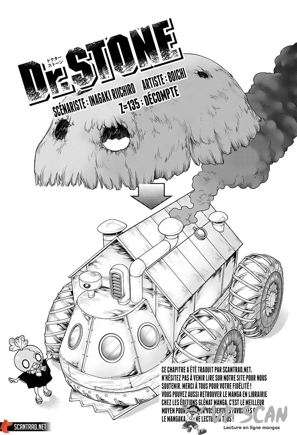 Lisez le dernier manga Dr. Stone Chapter 135 sur SushiScan. Le manga Dr. Stone est toujours mis à jour sur SushiScan. N'oubliez pas de lire les autres mises à jour de manga. Une liste de collections de manga SushiScan se trouve dans le menu Liste de manga.