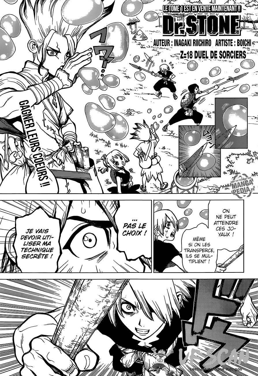 Lisez le dernier manga Dr. Stone Chapter 18 sur SushiScan. Le manga Dr. Stone est toujours mis à jour sur SushiScan. N'oubliez pas de lire les autres mises à jour de manga. Une liste de collections de manga SushiScan se trouve dans le menu Liste de manga.