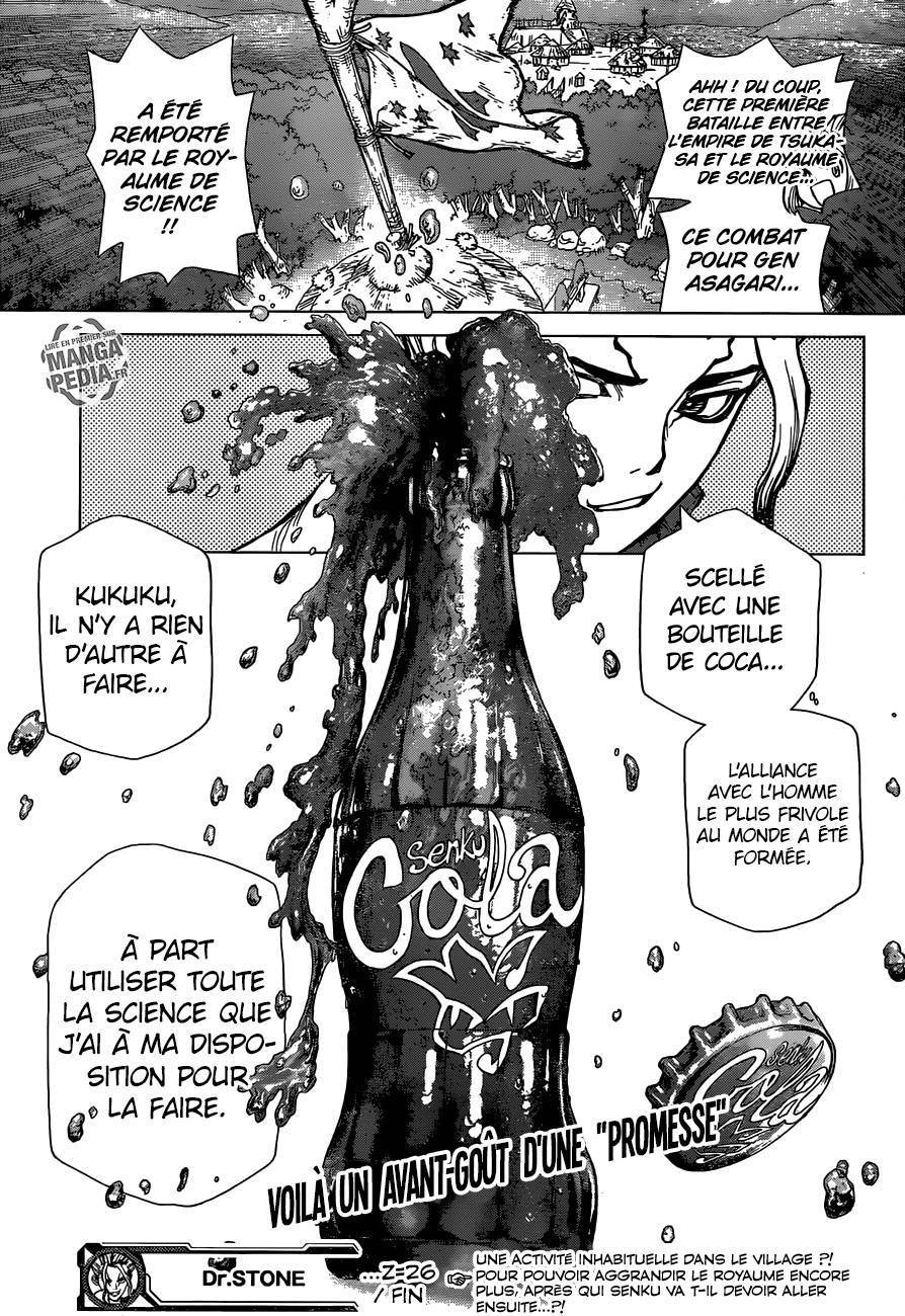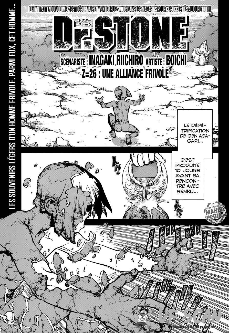 Lisez le dernier manga Dr. Stone Chapter 26 sur SushiScan. Le manga Dr. Stone est toujours mis à jour sur SushiScan. N'oubliez pas de lire les autres mises à jour de manga. Une liste de collections de manga SushiScan se trouve dans le menu Liste de manga.