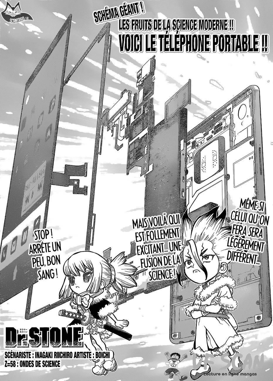 Lisez le dernier manga Dr. Stone Chapter 58 sur SushiScan. Le manga Dr. Stone est toujours mis à jour sur SushiScan. N'oubliez pas de lire les autres mises à jour de manga. Une liste de collections de manga SushiScan se trouve dans le menu Liste de manga.