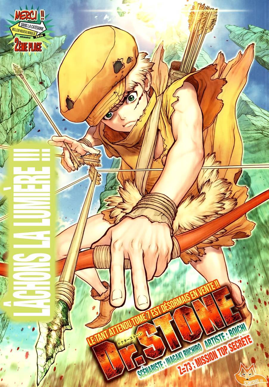 Lisez le dernier manga Dr. Stone Chapter 73 sur SushiScan. Le manga Dr. Stone est toujours mis à jour sur SushiScan. N'oubliez pas de lire les autres mises à jour de manga. Une liste de collections de manga SushiScan se trouve dans le menu Liste de manga.