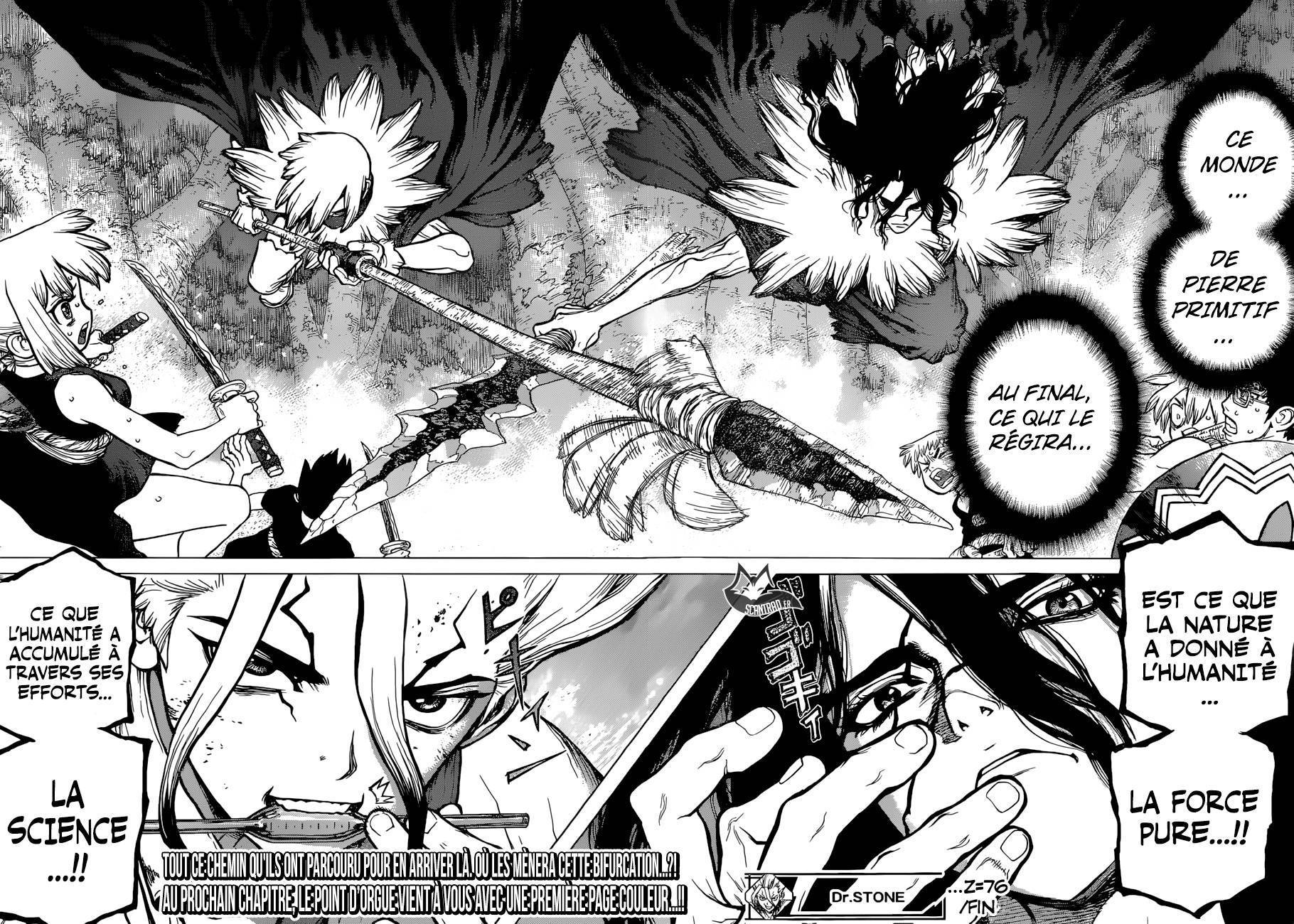 Lisez le dernier manga Dr. Stone Chapter 76 sur SushiScan. Le manga Dr. Stone est toujours mis à jour sur SushiScan. N'oubliez pas de lire les autres mises à jour de manga. Une liste de collections de manga SushiScan se trouve dans le menu Liste de manga.