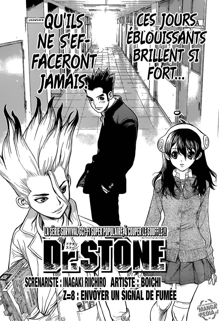 Lisez le dernier manga Dr. Stone Chapter 8 sur SushiScan. Le manga Dr. Stone est toujours mis à jour sur SushiScan. N'oubliez pas de lire les autres mises à jour de manga. Une liste de collections de manga SushiScan se trouve dans le menu Liste de manga.