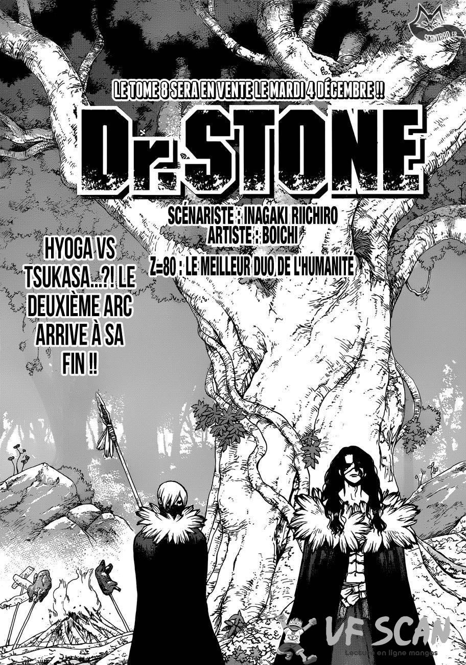 Lisez le dernier manga Dr. Stone Chapter 80 sur SushiScan. Le manga Dr. Stone est toujours mis à jour sur SushiScan. N'oubliez pas de lire les autres mises à jour de manga. Une liste de collections de manga SushiScan se trouve dans le menu Liste de manga.