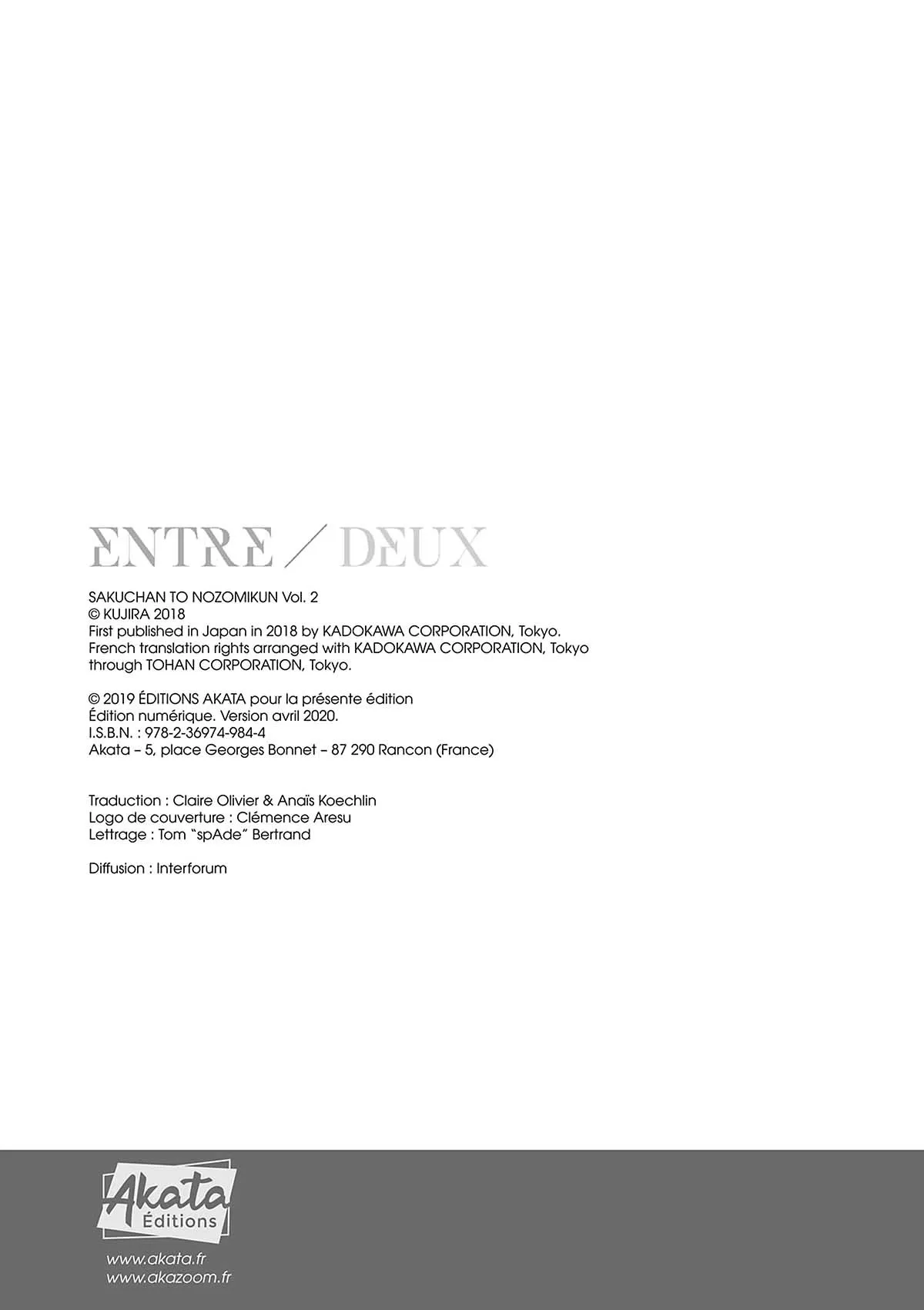 Lisez le dernier manga Entre/Deux Tome 2 sur SushiScan. Le manga Entre/Deux est toujours mis à jour sur SushiScan. N'oubliez pas de lire les autres mises à jour de manga. Une liste de collections de manga SushiScan se trouve dans le menu Liste de manga.
