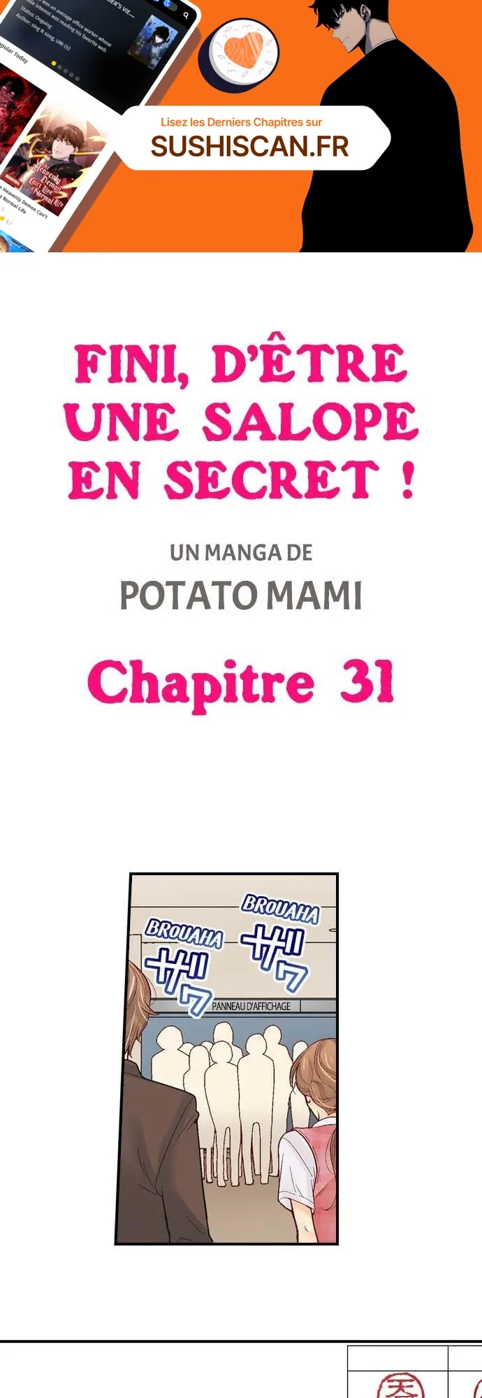 Lisez le dernier manga Fini, d’être une salope en secret ! Chapitre 31 sur SushiScan. Le manga Fini, d’être une salope en secret ! est toujours mis à jour sur SushiScan. N'oubliez pas de lire les autres mises à jour de manga. Une liste de collections de manga SushiScan se trouve dans le menu Liste de manga.