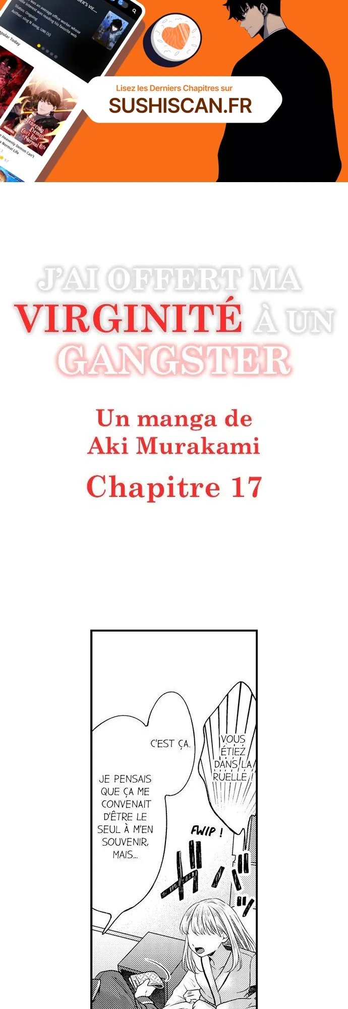 Lisez le dernier manga J’ai offert ma virginité à un gangster Chapitre 17 sur SushiScan. Le manga J’ai offert ma virginité à un gangster est toujours mis à jour sur SushiScan. N'oubliez pas de lire les autres mises à jour de manga. Une liste de collections de manga SushiScan se trouve dans le menu Liste de manga.