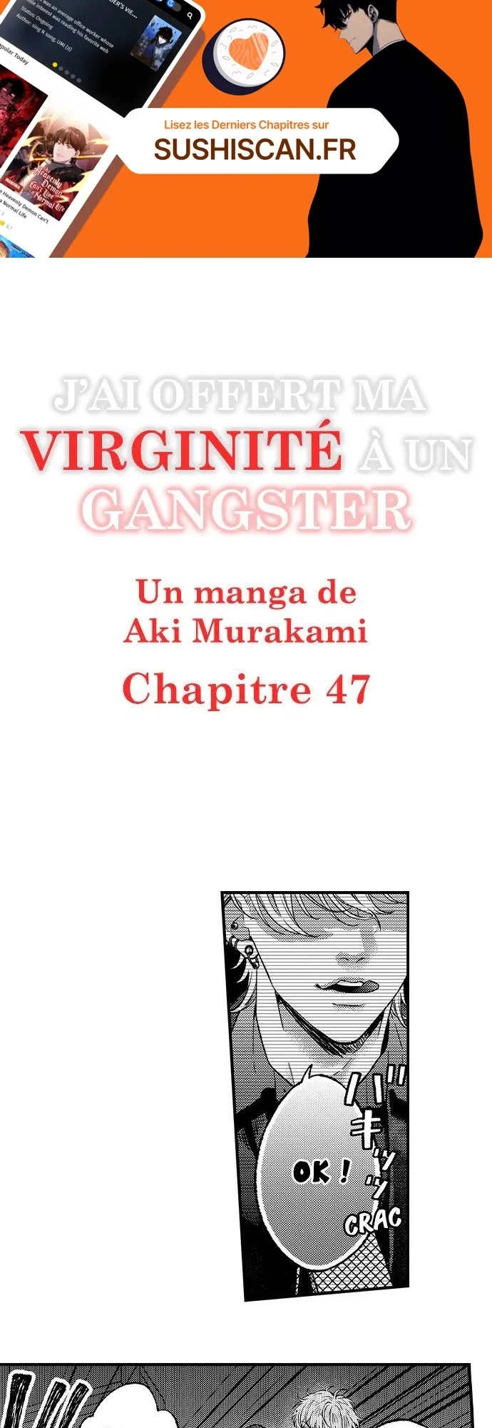 Lisez le dernier manga J’ai offert ma virginité à un gangster Chapitre 47 sur SushiScan. Le manga J’ai offert ma virginité à un gangster est toujours mis à jour sur SushiScan. N'oubliez pas de lire les autres mises à jour de manga. Une liste de collections de manga SushiScan se trouve dans le menu Liste de manga.