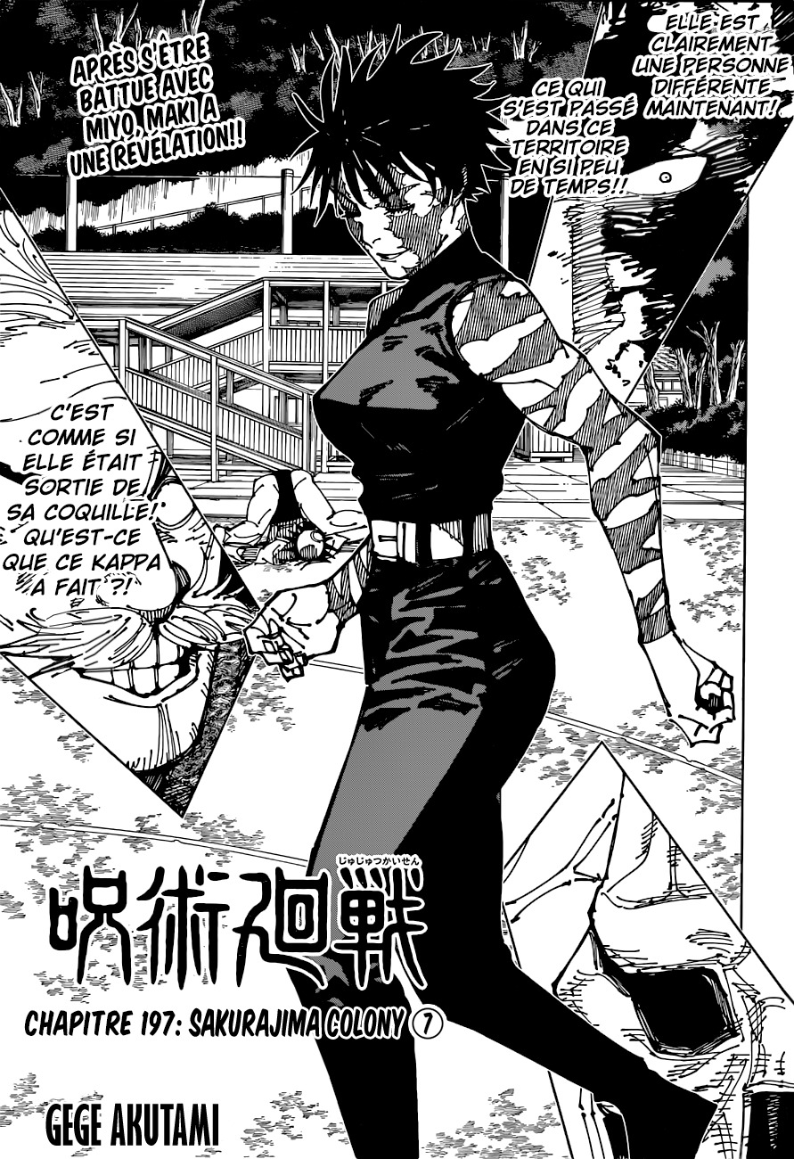 Lisez le dernier manga Jujutsu Kaisen Chapitre 197 sur SushiScan. Le manga Jujutsu Kaisen est toujours mis à jour sur SushiScan. N'oubliez pas de lire les autres mises à jour de manga. Une liste de collections de manga SushiScan se trouve dans le menu Liste de manga.