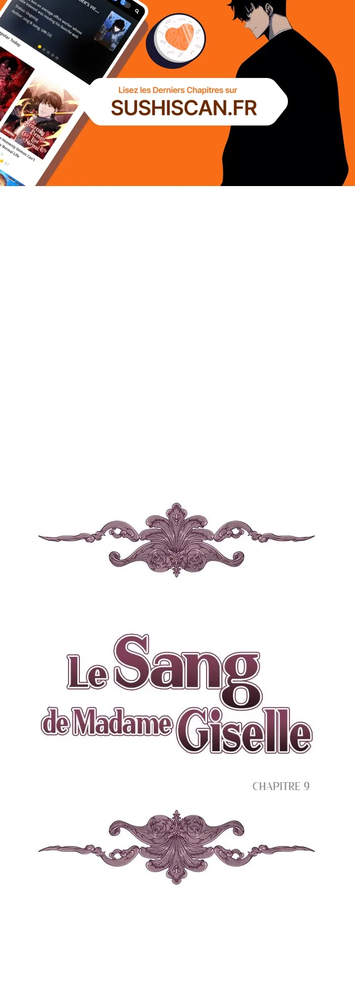 Lisez le dernier manga Le Sang de Madame Giselle Chapitre 9 sur SushiScan. Le manga Le Sang de Madame Giselle est toujours mis à jour sur SushiScan. N'oubliez pas de lire les autres mises à jour de manga. Une liste de collections de manga SushiScan se trouve dans le menu Liste de manga.
