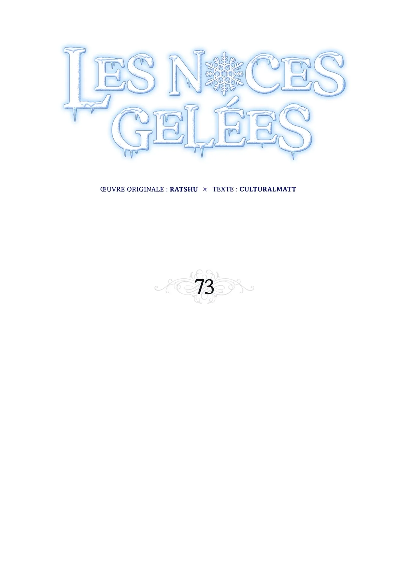 Lisez le dernier manga Les Noces gelées Chapitre 73 sur SushiScan. Le manga Les Noces gelées est toujours mis à jour sur SushiScan. N'oubliez pas de lire les autres mises à jour de manga. Une liste de collections de manga SushiScan se trouve dans le menu Liste de manga.