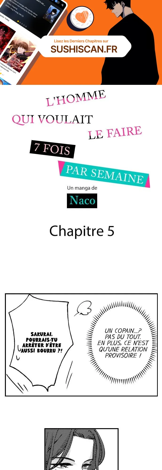 Lisez le dernier manga L’homme qui voulait le faire 7 fois par semaine Chapitre 5 sur SushiScan. Le manga L’homme qui voulait le faire 7 fois par semaine est toujours mis à jour sur SushiScan. N'oubliez pas de lire les autres mises à jour de manga. Une liste de collections de manga SushiScan se trouve dans le menu Liste de manga.