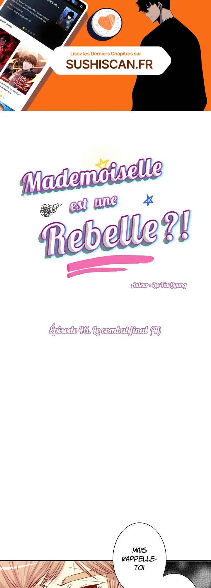 Lisez le dernier manga Mademoiselle est une rebelle ?! Chapitre 46 sur SushiScan. Le manga Mademoiselle est une rebelle ?! est toujours mis à jour sur SushiScan. N'oubliez pas de lire les autres mises à jour de manga. Une liste de collections de manga SushiScan se trouve dans le menu Liste de manga.
