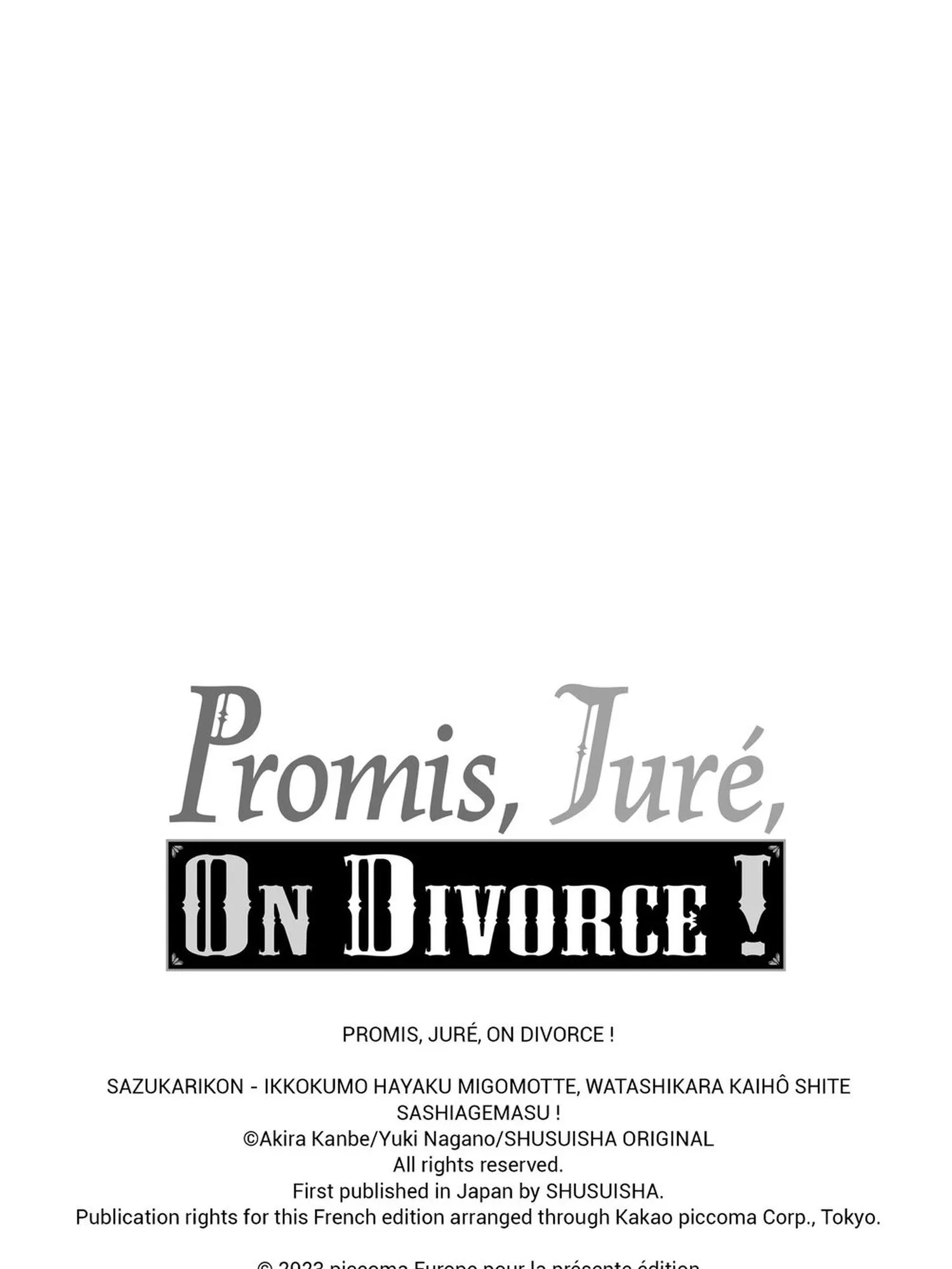 Lisez le dernier manga Promis, juré, on divorce ! Tome 20 sur SushiScan. Le manga Promis, juré, on divorce ! est toujours mis à jour sur SushiScan. N'oubliez pas de lire les autres mises à jour de manga. Une liste de collections de manga SushiScan se trouve dans le menu Liste de manga.