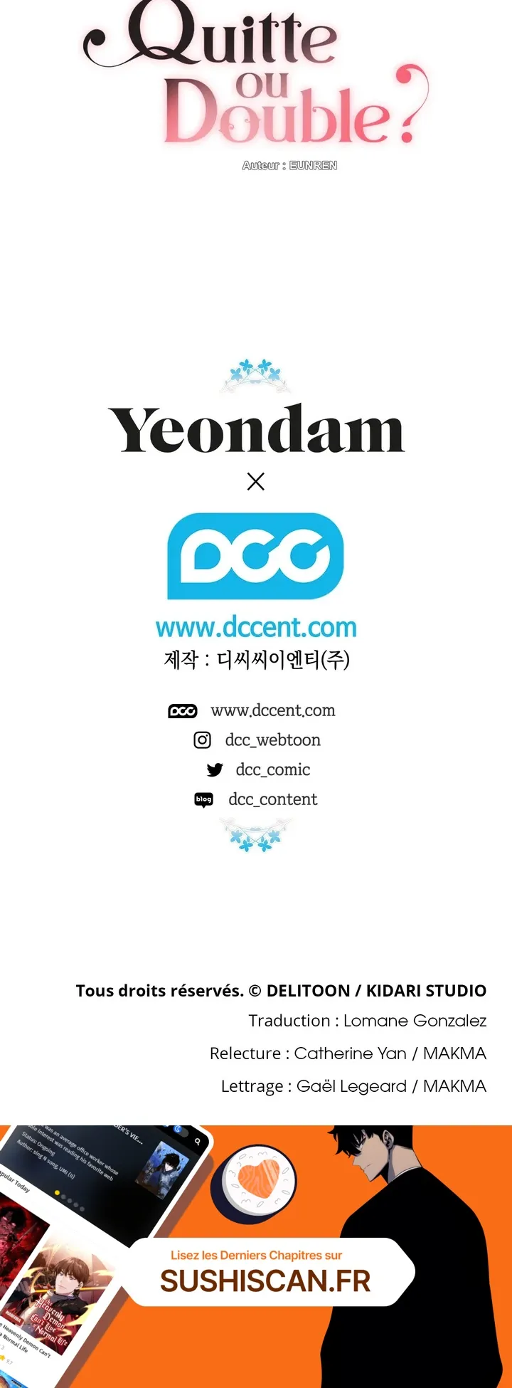 Lisez le dernier manga Quitte ou Double ? Chapitre 115 sur SushiScan. Le manga Quitte ou Double ? est toujours mis à jour sur SushiScan. N'oubliez pas de lire les autres mises à jour de manga. Une liste de collections de manga SushiScan se trouve dans le menu Liste de manga.