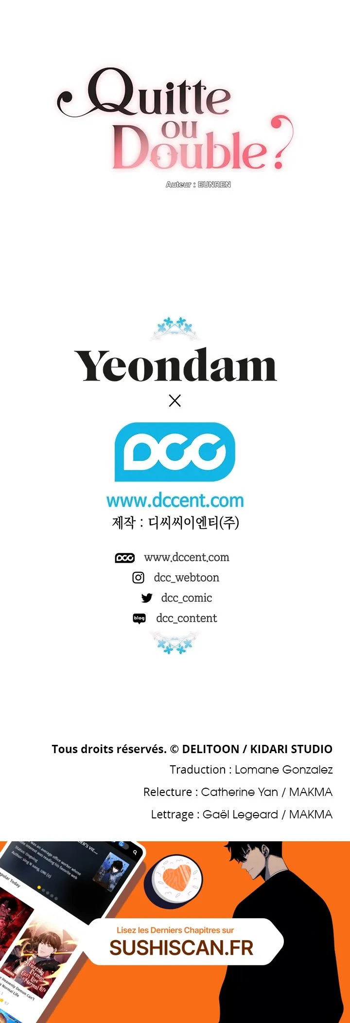 Lisez le dernier manga Quitte ou Double ? Chapitre 13 sur SushiScan. Le manga Quitte ou Double ? est toujours mis à jour sur SushiScan. N'oubliez pas de lire les autres mises à jour de manga. Une liste de collections de manga SushiScan se trouve dans le menu Liste de manga.