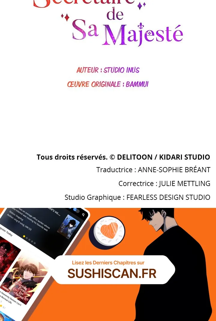 Lisez le dernier manga Secrétaire de Sa Majesté Chapitre 6 sur SushiScan. Le manga Secrétaire de Sa Majesté est toujours mis à jour sur SushiScan. N'oubliez pas de lire les autres mises à jour de manga. Une liste de collections de manga SushiScan se trouve dans le menu Liste de manga.