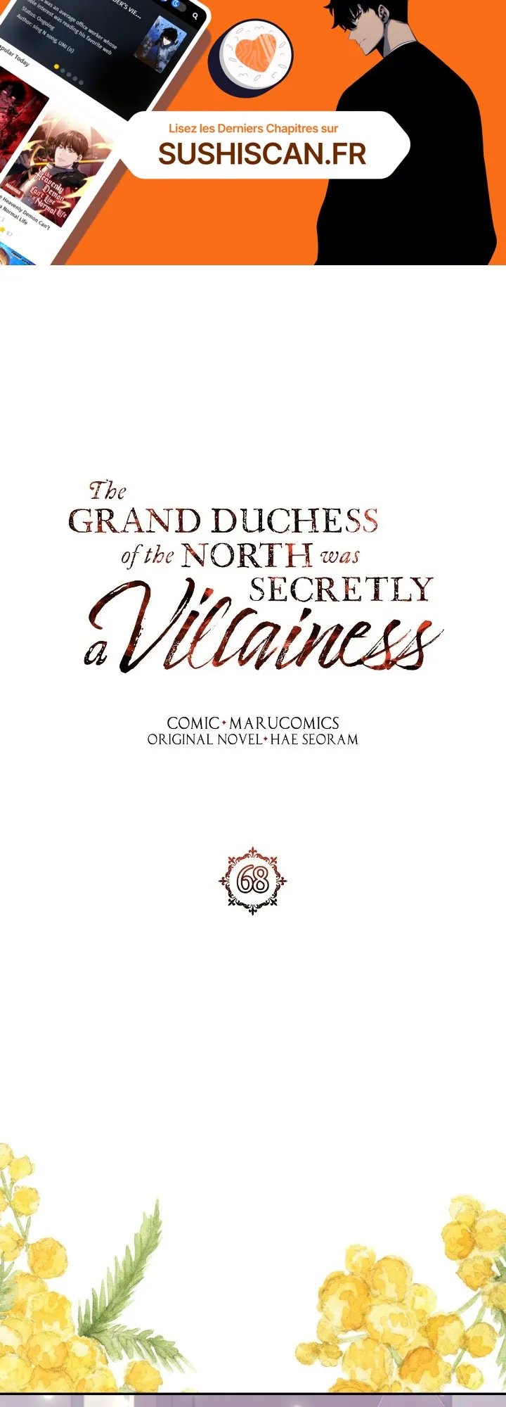 Lisez le dernier manga The Grand Duchess of the North Was Secretly a Villainess Chapitre 68 sur SushiScan. Le manga The Grand Duchess of the North Was Secretly a Villainess est toujours mis à jour sur SushiScan. N'oubliez pas de lire les autres mises à jour de manga. Une liste de collections de manga SushiScan se trouve dans le menu Liste de manga.