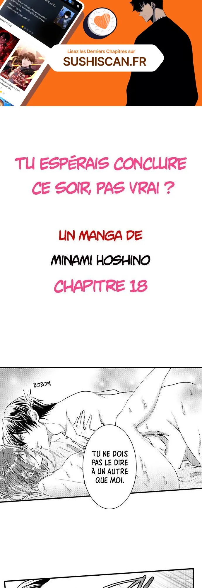 Lisez le dernier manga Tu espérais conclure ce soir, pas vrai ? Chapitre 18 sur SushiScan. Le manga Tu espérais conclure ce soir, pas vrai ? est toujours mis à jour sur SushiScan. N'oubliez pas de lire les autres mises à jour de manga. Une liste de collections de manga SushiScan se trouve dans le menu Liste de manga.