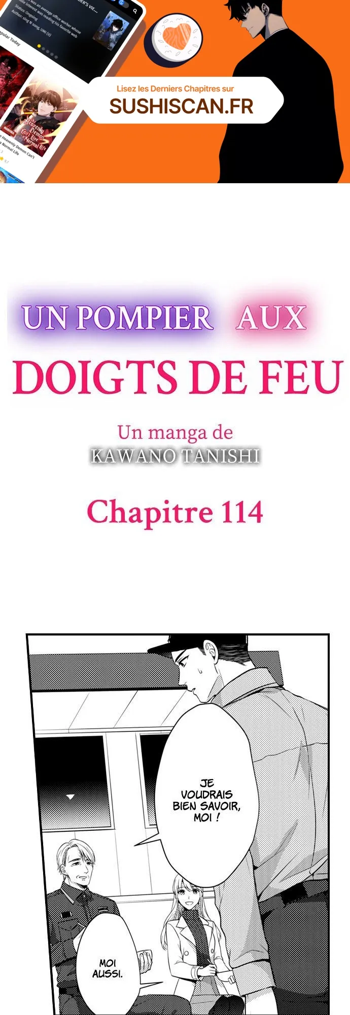 Lisez le dernier manga Un pompier aux doigts de feu Chapitre 114 sur SushiScan. Le manga Un pompier aux doigts de feu est toujours mis à jour sur SushiScan. N'oubliez pas de lire les autres mises à jour de manga. Une liste de collections de manga SushiScan se trouve dans le menu Liste de manga.