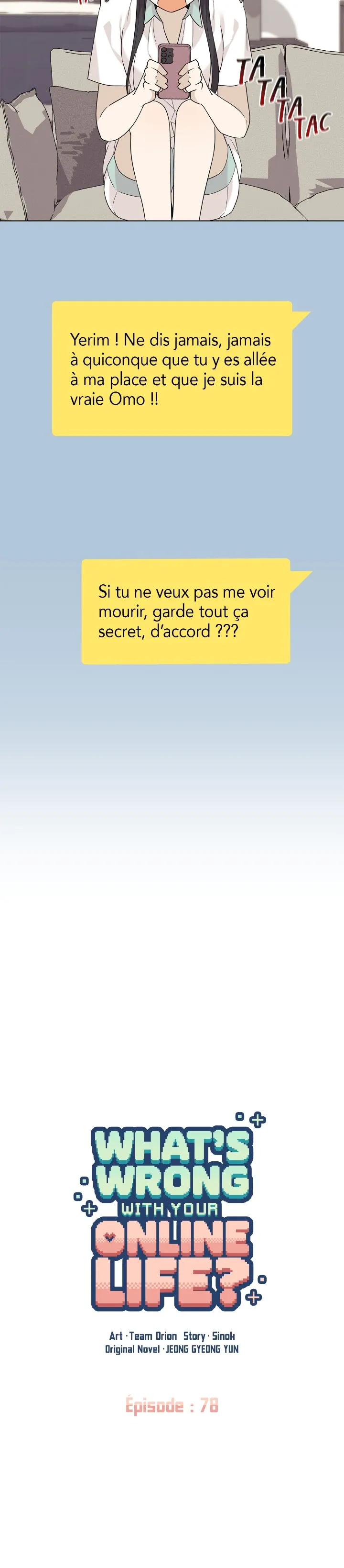Lisez le dernier manga What’s Wrong With Your Online Life? Chapitre 78 sur SushiScan. Le manga What’s Wrong With Your Online Life? est toujours mis à jour sur SushiScan. N'oubliez pas de lire les autres mises à jour de manga. Une liste de collections de manga SushiScan se trouve dans le menu Liste de manga.